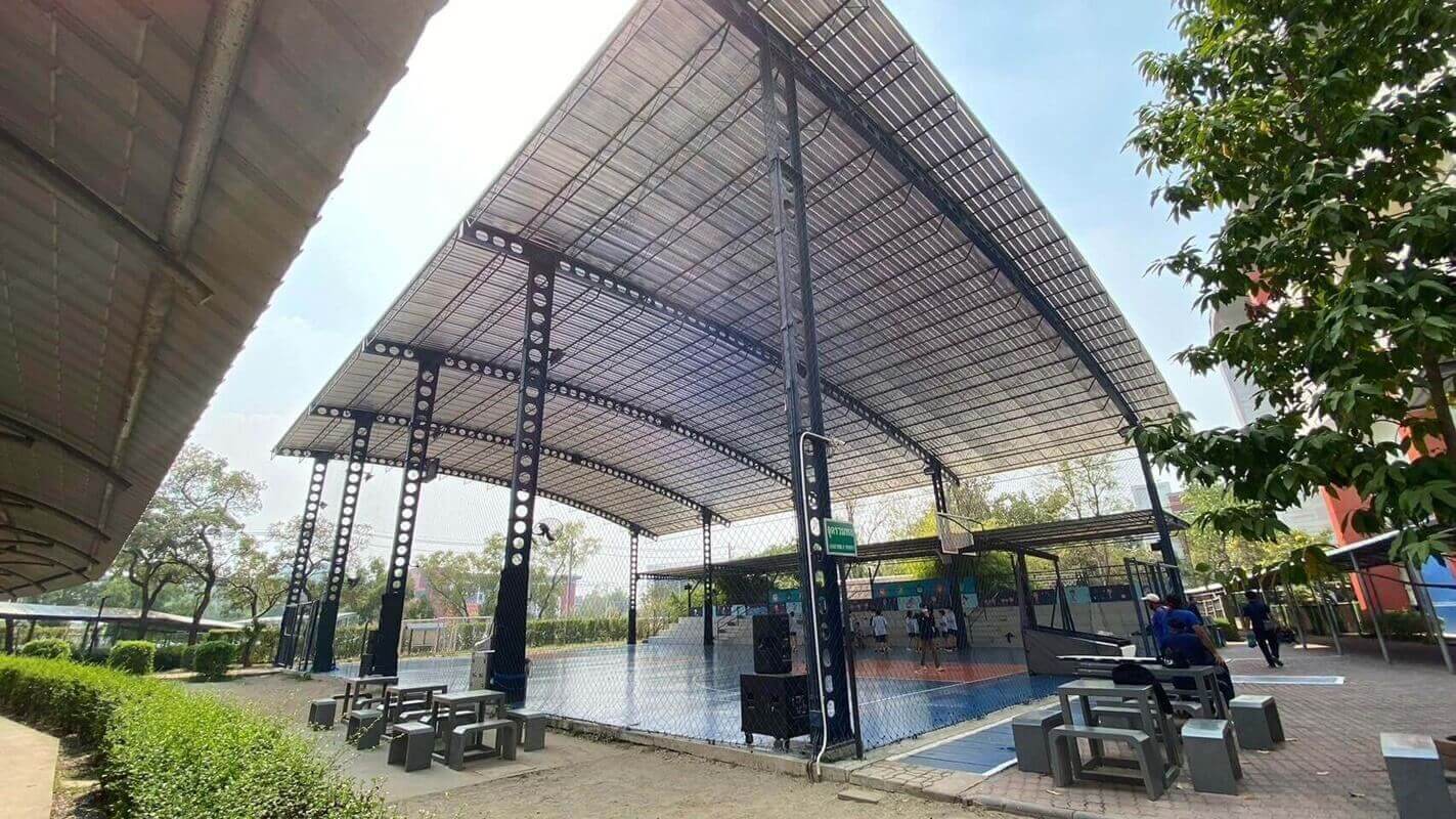 รายละเอียดโครงการ : รับทำโครงสร้างเหล็กเซลลูล่าร์บีม (Cellular beam) หน่วยงานสนามบาส & สนามฟุตบอล Soccker Pro สาขาเจริญราษฎร์-สาทร
